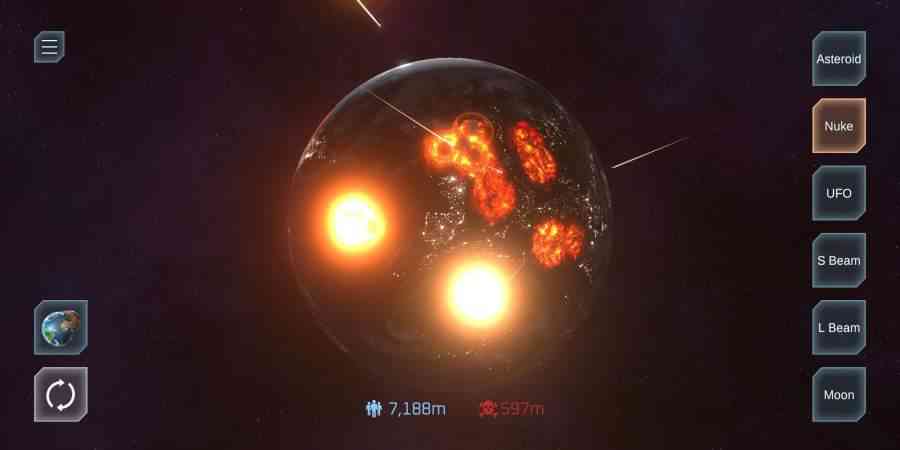 游戏采用高清写实的天体模拟,让你在游戏中感受到真实太空的震撼。你可以用各种方法毁灭一个星球,从闪电、火灾到陨石撞击,都能在游戏中体验到,破防了...。