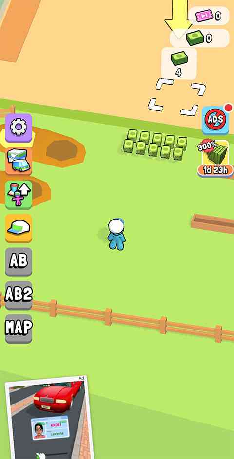 划水。 1、 进到游戏后通过滑动屏幕控制小蓝人移动到方框位置,即可使用金币解锁收银台。