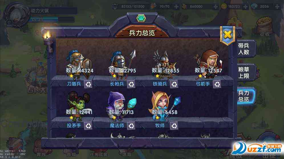 丰富的关卡设计:普通/精英关卡、 野怪关卡、试炼关卡、世界BOSS关卡等等,战斗开始以后士兵会自动前进,自动战斗,不需要操作。