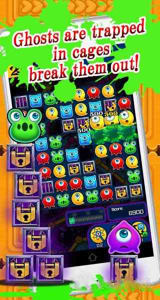 3、简单将3只幽灵连接起来的三消游戏,简单,爽快。消除更多幽灵,好家伙...。