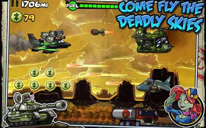 心情复杂。 在《王牌僵尸飞行员》中, 你可以选择五个不同的僵尸飞行员,每个飞行员都有独特的技能和能力。你将有机会升级他们的技能,一边也可以提升飞机的性能,包括引擎和燃料。面对美国的防御军队, 你需要灵活运用你的战术,躲避攻击,穿越雷电,完成100个任务,实现你的侵略美帝的梦想!