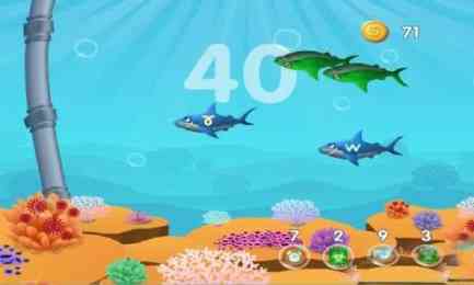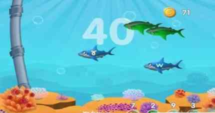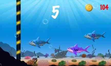 游戏中一群凶恶的鲨鱼想要冲过你的防区, 你必须在它们闯入之前将它们消灭掉,鲨鱼的背上会有字母,只要在屏幕上画出相应字母就能击败它们,闹笑话。。