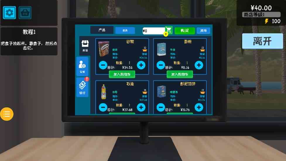 玩家需要采购各种商品, 并在网上寻找优惠价格进行购买, 捡漏。 然后将商品摆放在超市货架上吸引顾客。