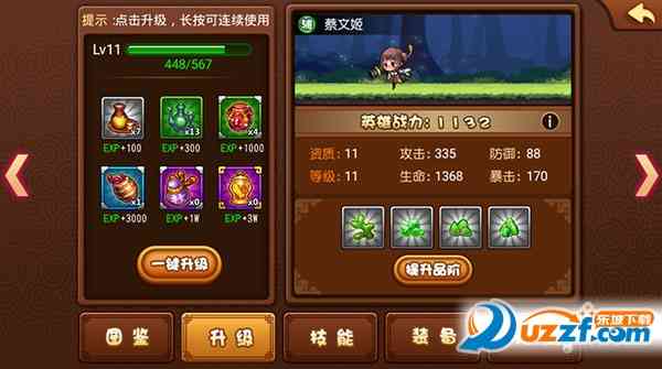 点击一键升级来让英雄升级, 不过英雄等级不可超过主角等级,英雄升级会提高英雄战力。