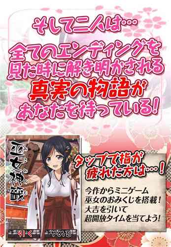 试着... 拘束巫女是ESC-APE by SEEC开发的一款养成游戏。游戏是拘束少女的开发商最新作品,玩法和《拘束少女》基本相同。玩家要通过点击画面中的巫女来触发动画,巫女的服装会在一定几率下遭到破坏,是一款非常有内涵的游戏。本作的语音和动画非常丰富, 玩家可以因为不同的对话发展出5种不同的结局,而真实的剧情还隐藏在结局的背后。