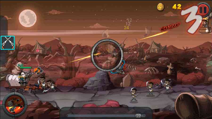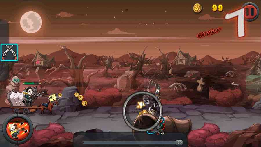 《孤胆枪王》是一款融合了射击与冒险元素的横版动作手游。在这片广袤的土地上,你将扮演一位勇敢的枪手,驾驶马车, 泰酷辣! 与敌人展开一场场惊心动魄的战斗。空中的敌人、地面的障碍,你需要用精准的射击和灵活的操作来应对。