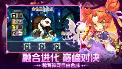 分为随机融合与配方融合。随机融合需选择相同档次的三只宠物进行融合, 从低档至高档必须逐步合成,合成机率为50%,失败会保留三只中品质最高的一只;配方融合则需要三只相同的满档宠物,合成机率为100%。