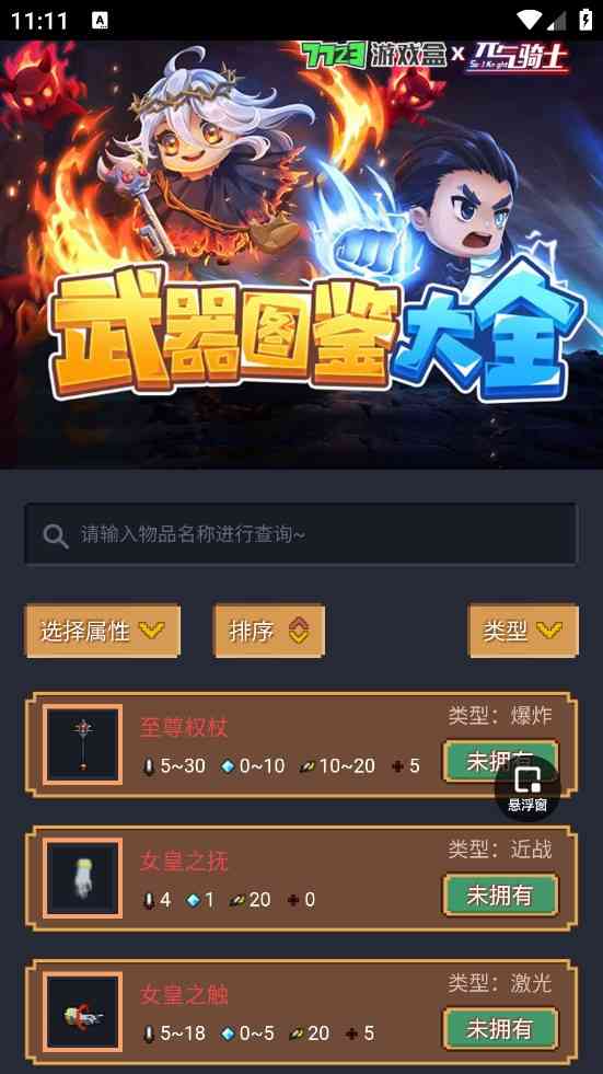 元气骑士武器图鉴工具APP是一款专门用于辅助元气骑士玩家们如何合成、 升级以及配置武器的图鉴查询工具,通过这款软件可以更好的帮助玩家们提升游戏体验,而且它提供的游戏资料较为全面能让玩家快速了解游戏内各种元素的信息。更是包含元气骑士前传宠物技能图鉴百科、角色技能百科、装备百科,可查询相关内容,挽救一下。。