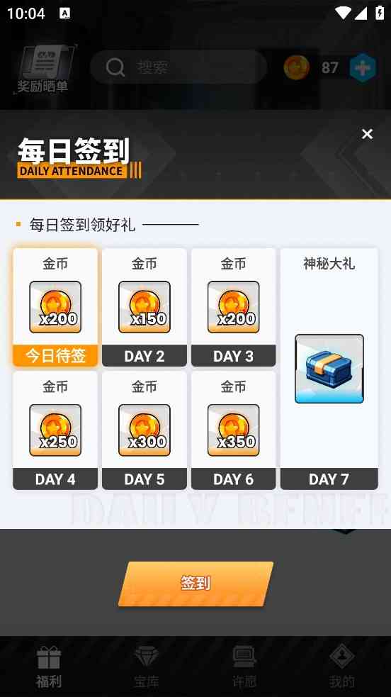 3、每日签到:通常APP会设置每日签到功能,连续签到一定天数可以获得相应的皮肤奖励。 操作一波。 记得每天打开APP进行签到。