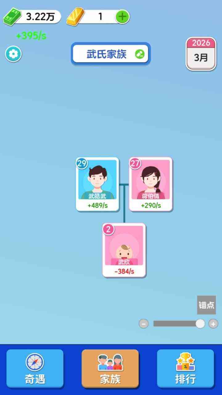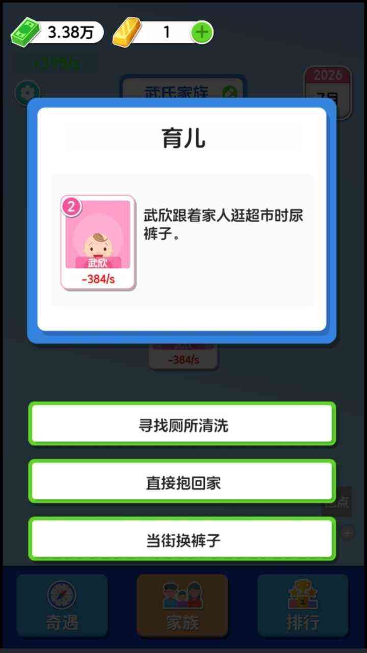 2.选择好一个角色之后就进入到了游戏当中, 并且会跟因为时间的发展而发生不一样的事情,你会遇到自己的另一半,一边又会繁衍出下一代,在这期间也会获得一些收入,一边也会有消费的地方,其实我觉得这款游戏的核心内容就是在不停的赚取一些收益,养成的成分还是比较重的,发生的事情会给你几种不同的选择,你可以根据自己的情况去。选择适合自己的另一个方法,探探路。。