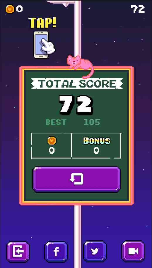 甜甜圈猫是一款非常考验反应能力的休闲游戏, 你需要快速的变换小猫的方向以防止撞到障碍,赶快试试吧!