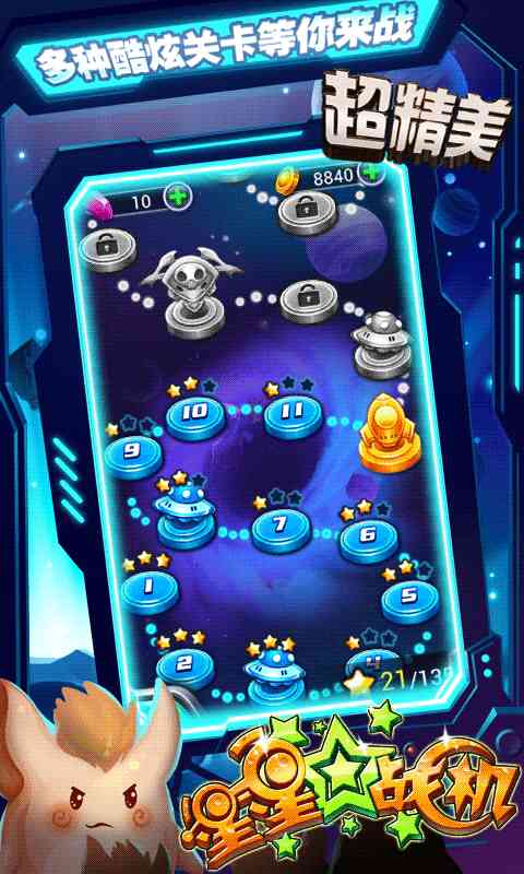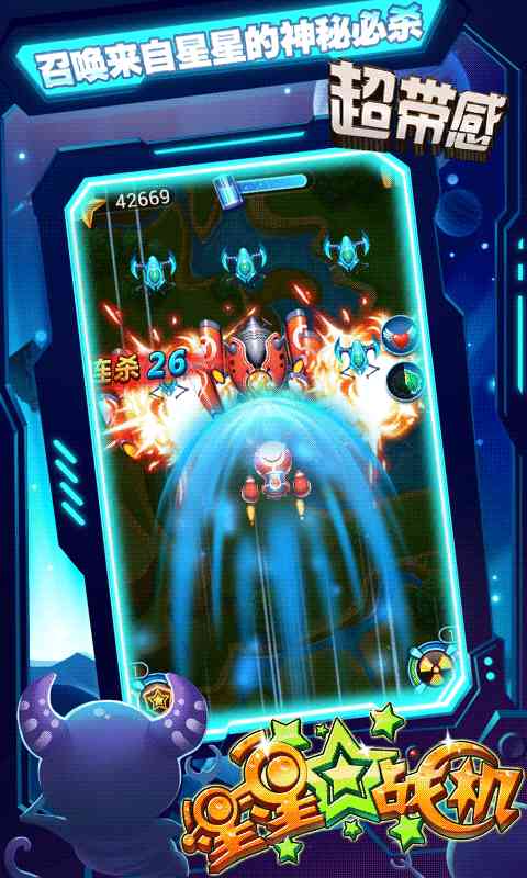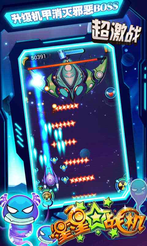 《星星战机》为你揭秘来自星星的神秘剧情。华丽弹幕,超精致美漫画风,多种战机与辅助僚机组合参战。浩瀚宇宙,没有炸鸡与啤酒的碰撞,唯有命运与奇迹的邂逅。勇敢的少年,快去创造奇迹吧,瞎扯。!