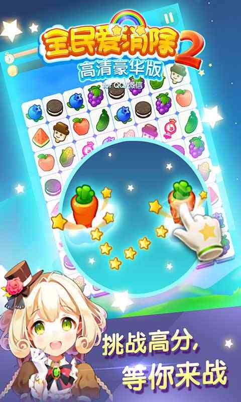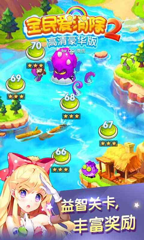 全民爱消除2高清豪华版是腾讯最新的超好玩消除手游, 萌萌哒游戏画面轻松愉快的游戏玩法,让你尽享游戏快乐,欢迎来体验,奥利给!!