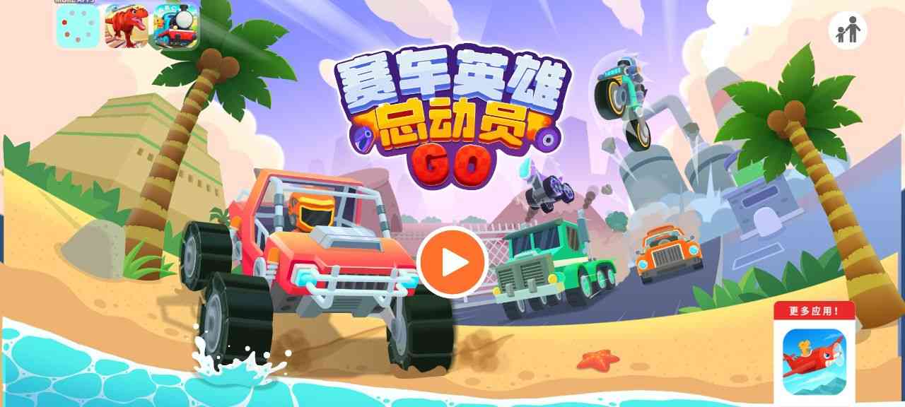 赛车英雄总动员,2-5岁的孩子在9条赛道上比赛,驾驶24辆车,并自定义72个油漆工作!通过参与我们的游戏,孩子们不仅仅是在玩耍,他们还获得了学习和解决问题的技能。他们在不同的环境中导航,探索赛道、沙漠、冰原、草地、海滩和火山,闹笑话。。