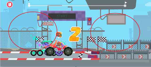 2、进入游戏之后自动开始第一次的比赛,长按手机屏幕的右边,就是加速前进,左边就是停车。
