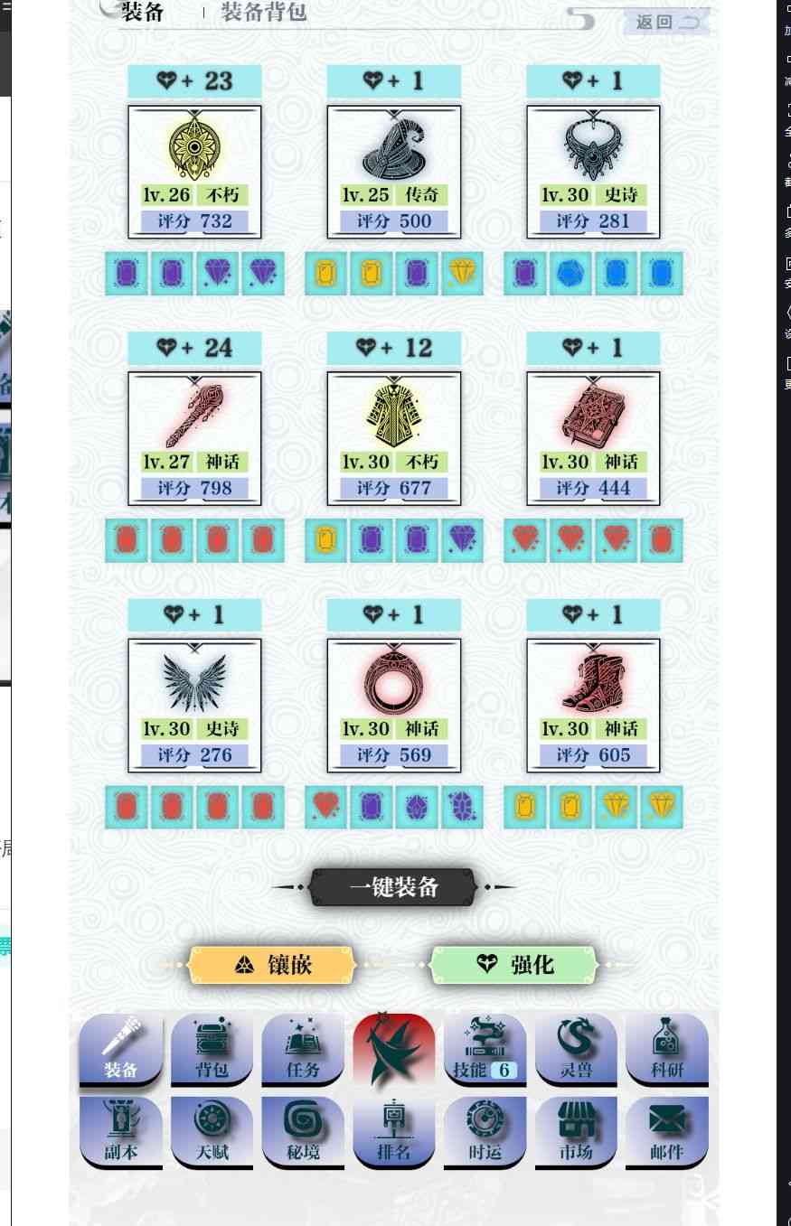 不忍直视。 装备功能应该是开局就开启。在其中可以对装备进行强化, 镶嵌宝石,以及更换装备