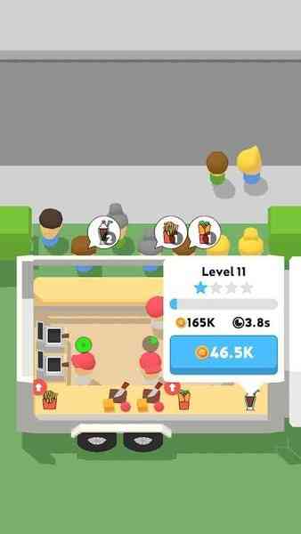 3、 游戏的玩法轻松,不需要玩家过多的操作,并且是可以放置的,玩家可以从简单的柠檬水摊开始,逐步发展到食品卡车、咖啡馆,到头来拥有自己的餐厅和Drive-thru,是吧?。