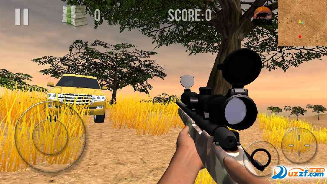 玩家驾驶四驱车,在大草原上随意驰骋,发现动物后可以下车狩猎,尽情享受狩猎的乐趣。
