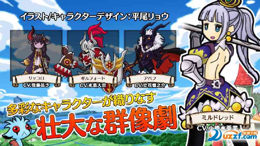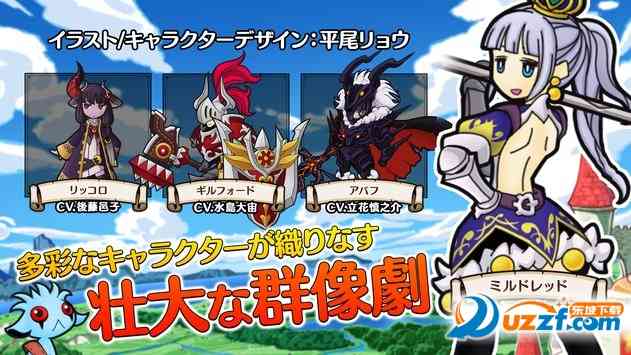 本作是一款卡通风格的日式RPG游戏。玩家在游戏中将会来到人、魔、鼠三族共同生活的世界之中,并在这里以不同角色视角来感受游戏的主要故事。游戏中有多名不同种族的英雄登场, 玩家可以使用各种道角和装备来提高他们的战斗力,还可以提升他们的稀有度,蚌埠住了...。