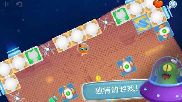 太刺激了。 在被摧毁的太空站残骸中平安行走是一大难题, 玩家需要依靠手机的重力感应旋转来改变路线,利用各种道具进行路障摧毁,解救黄色独眼的小外星人。