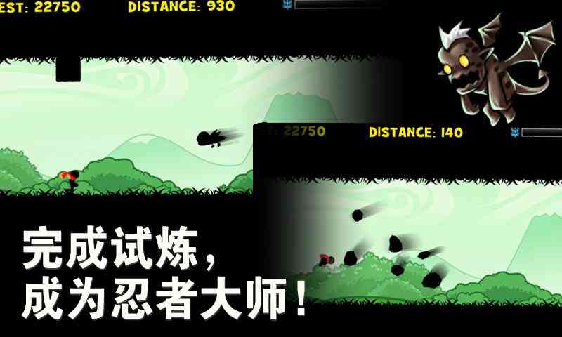 影子忍者试炼是一款好玩的充满了速度与激情的跑酷游戏!在这个全民跑酷的年代,影子忍者也加入了其中,至于他能跑多远,全看你的发挥了。