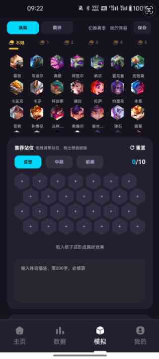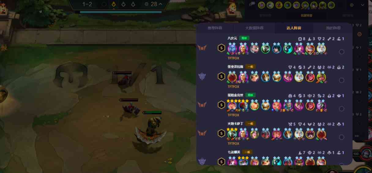 扯后腿。 展示本场玩家展示常玩阵 容和近 十场平均名次 并且智能推荐本局优选阵容。