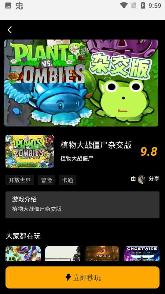 关注后点开始游戏就可以在手机上玩电脑上的很多热门游戏, 地平线,GTA5,植物大战僵尸杂交版等,开搞。
