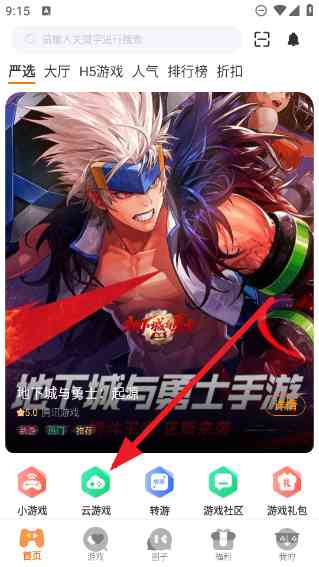 2、 登录成功后我们来到软件的首页,可以直接找到云游戏,点击。