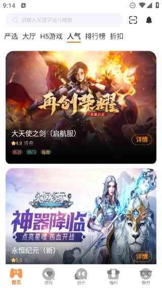 3、热门游戏题材一目了然大家去选择游戏畅玩十分的方便容易。