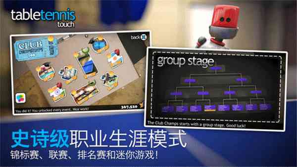 2、迷你游戏乐:13种独特的乒乓球挑战,包括半桌、保龄球、命中区。