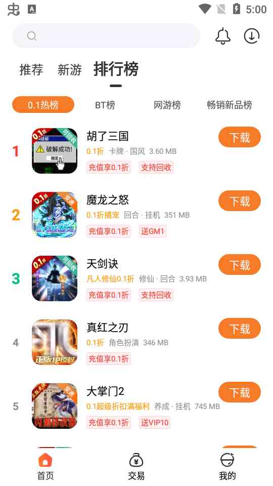 完善一下。 游戏成了许多人放松心情、释放压力的绝佳方式。而0.1折游戏盒子app,无疑是为广大游戏爱好者量身打造的一款神器。打开客户端, 各种精品手机游戏下载页面映入眼帘,让你轻松找到心仪的游戏,避免了想玩游戏却又找不到官方下载链接的烦恼。盒子内还有最新的游戏排行榜单、热门游戏推荐,让你轻松沉浸在游戏的欢乐中。