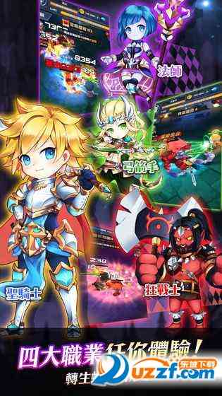 -「圣骑士」、 「狂战士」、「弓箭手」、「法师」四大职业可选择,不同职业乐趣将会大不相同,快来挑选最适合你的职业,是不是?!