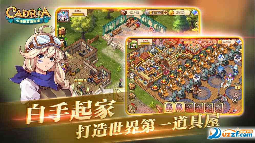 《卡德里亚道具屋》是一款模拟经营类休闲手游, 游戏画面清新脱俗,轻松愉悦的游戏设定让您随心所欲地打造属于自己的道具屋!游戏以店铺、 啊这... 城镇建设与工匠、英雄的养成为主。通过不断研发新的图纸,售卖各类道具,逐渐扩大店铺的经营范围和规模,帮助重建故乡小镇恢复繁荣!