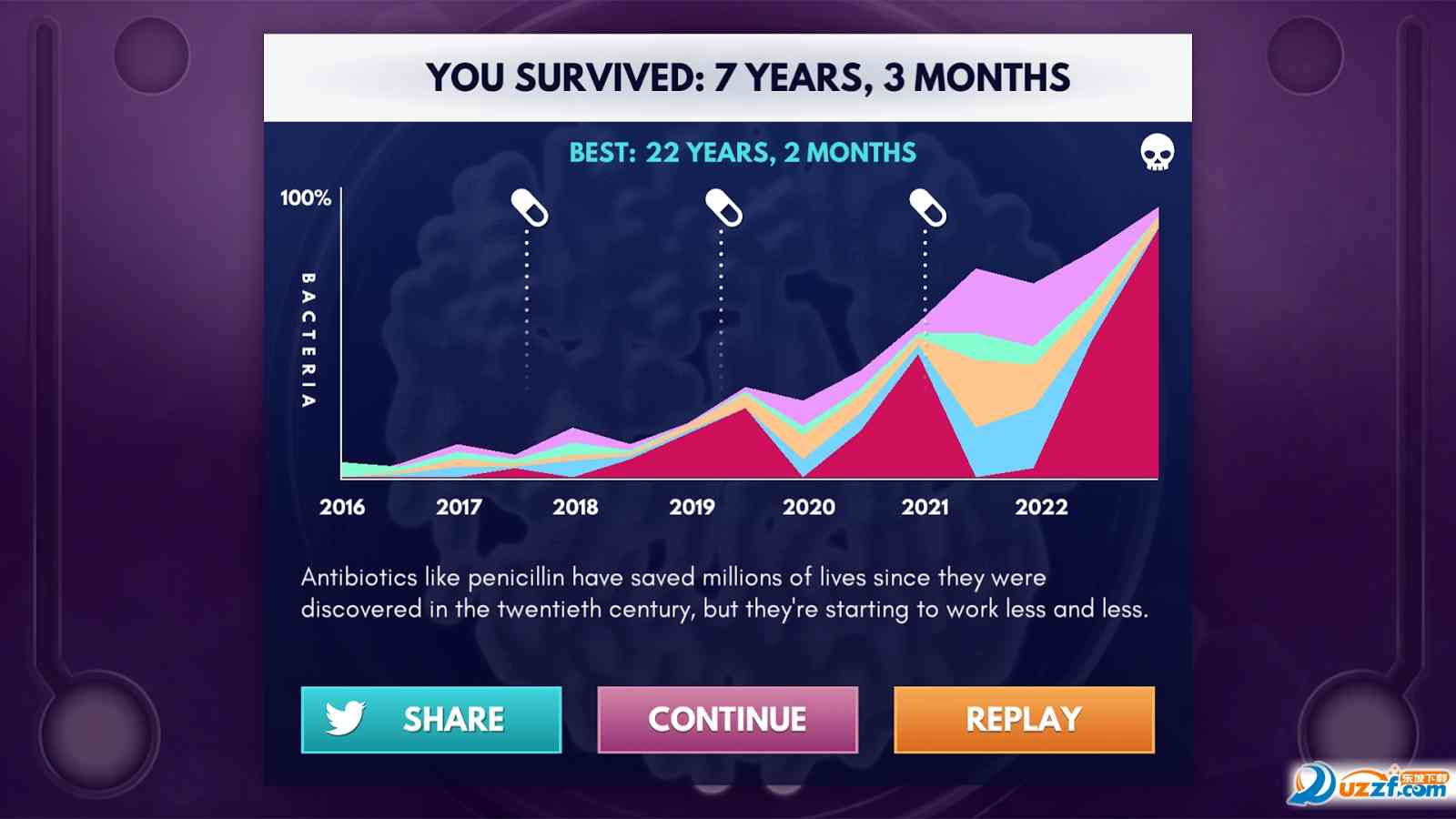 《超级细菌》的玩法简单却富有挑战性。游戏的目标是点击来消除不断尝试变异的细菌,一边,玩家可以使用全新的药物来消灭这些转化细菌。每当成功消灭细菌时那噼里啪啦的声音听起来感觉相当的带感,仿佛在为你的每一次胜利喝彩,不堪入目。。