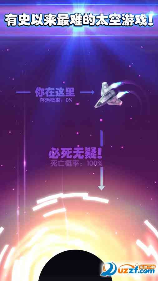 作为一款名字非常奇葩的游戏, 这款作死小飞船手游玩起来却意外的不错, 栓Q! 在游戏中玩家需要操作飞行器通过旋转冲向黑洞来获取分数。