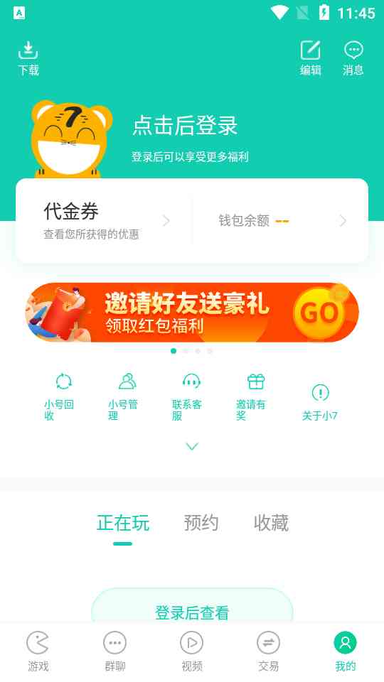 求锤得锤。 1、 先说说打开小7游戏盒可以看到下方有游戏、群聊、回收、交易标志