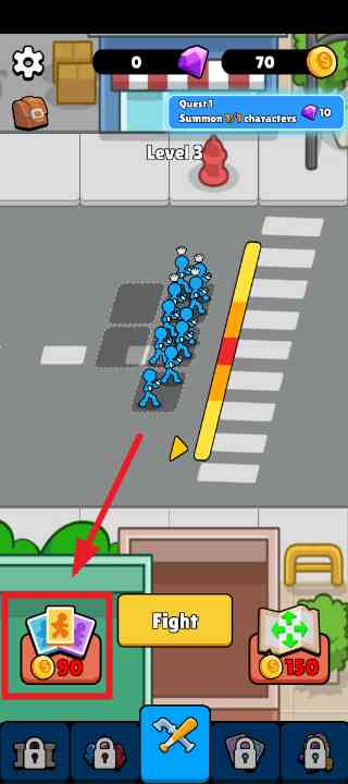 3、 通过不断合成强大的火柴人角色,组建强大的军队, KTV你。 再说说点击下方的fight进行战斗。