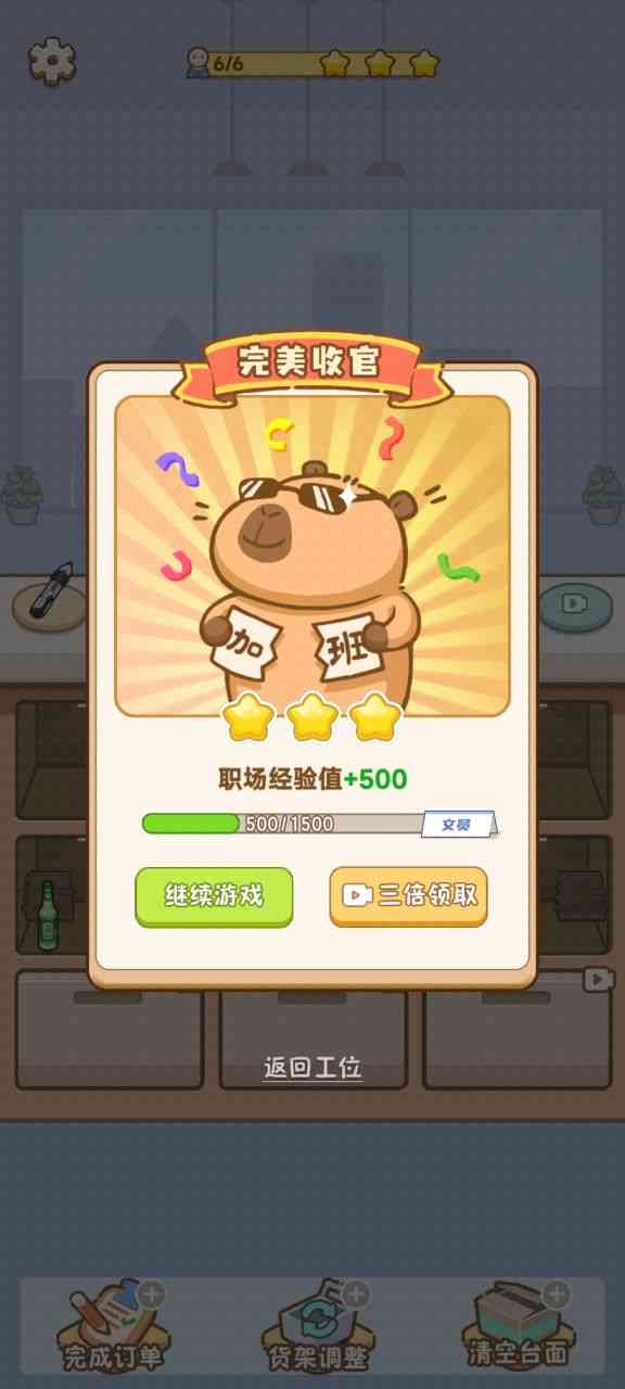 推倒重来。 通过合成小游戏获得订单中的物品,完成订单就可以获得金币奖励了。