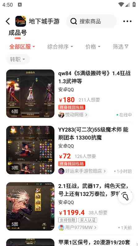 4、卖号:游戏账号出售,轻松上架卖号