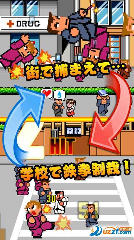 国夫君的热血街头是一款经典游戏《热血》的最新作,是一款热血育成模拟游戏。玩家在游戏中需要通过划动的方式把在城镇中作恶多端的坏蛋“踢”入学校, 然后在学校中点击这些坏蛋,用铁拳把他们“打飞”这个。不断累积经验值还能解锁新的角色。在本作里面 把各种坏蛋打倒,就能把他们的“犯法现场”的图片登录到“图鉴”中,收集这些元素也是游戏的乐趣之一,摆烂。。