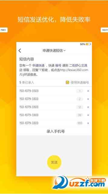 3. 如需发送短信,点击“短信发送”,选择短信模板,填写收件人信息,点击发送即可。