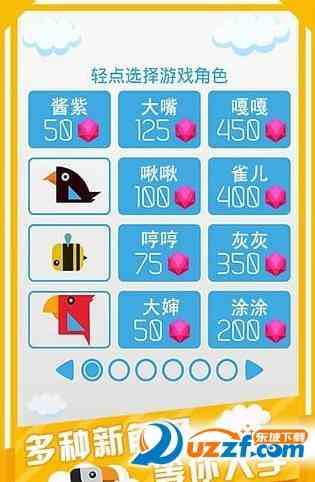 你点击的速度越快,小鸟飞的越快。一旦碰到墙壁,他会自动改变方向,所以你只需要担心他是否距离大眼足够远,高飞的路上能否吃到更多宝石。收集足够的宝石,能够解锁奇妙的新角色哦!