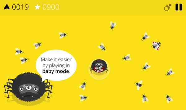 - 简单易上手的操作:只需要通过点击屏幕, 控制小蜘蛛吃掉昆虫,让你的蜘蛛宝宝变得越来越胖。
