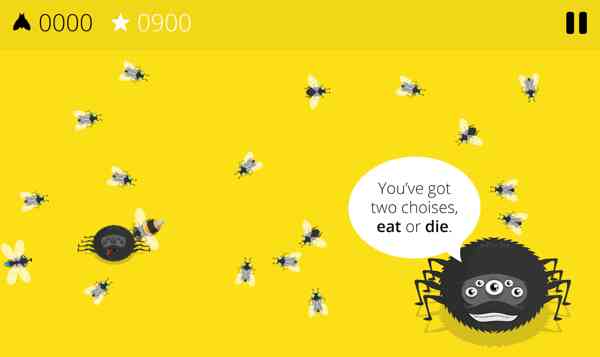 - 当小蜘蛛接触到昆虫时它们将被吞噬,一边你的小蜘蛛体重也会增加。