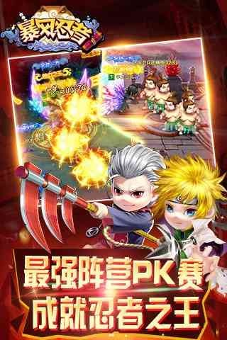 暴风忍者是一款Q版卡通即时动作手游。游戏高度还原火影忍者人物形象, 趣味性十足,玩家将进入令人向往的忍者世界,在淡淡和风韵味的背景中,用精致雕琢的角色,挑战S级任务。