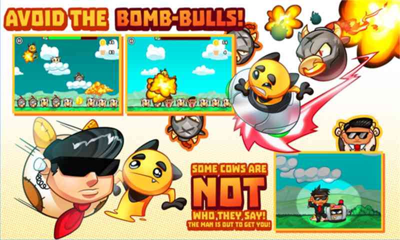 真香! 游戏很有趣, 有着外星人与奶牛,这是两位主角,在奶牛大恐慌里玩家注意的是为了避免UFO被地球人破坏,玩家一定要避免将炸弹或黑衣人吸上去,一旦吸错能量槽就会剧烈消耗。