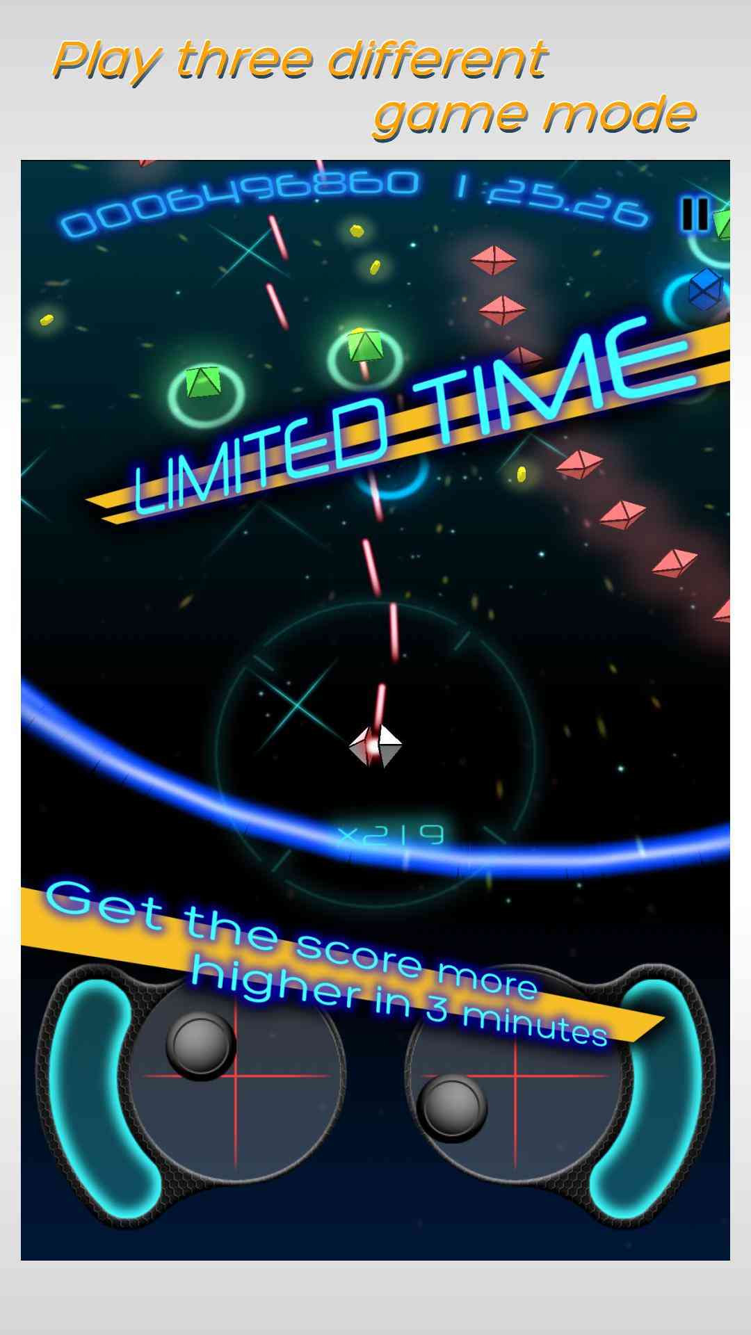 也是没谁了。 使用双棒来控制你的船。在这三种不同的舞台上挑战自己,让子弹在空中画出一道道华丽的弧线。