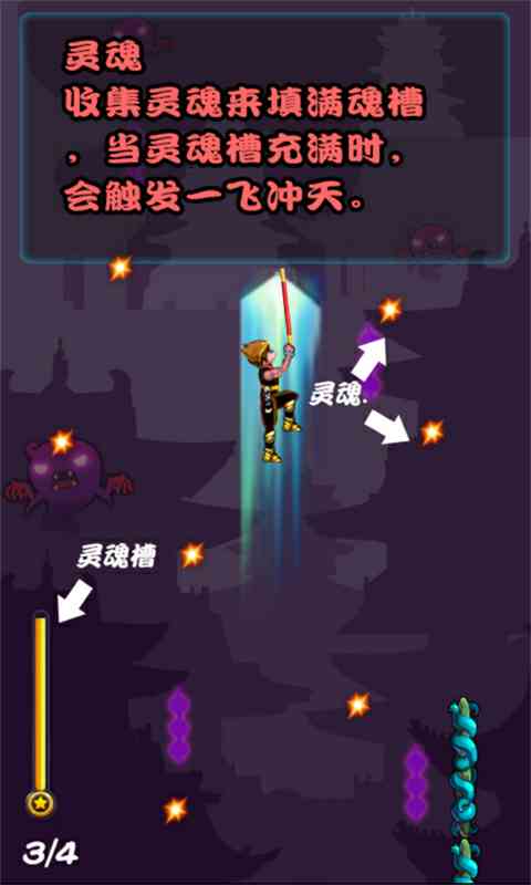 弯道超车。 跳跃的过程中可以收集灵魂,当灵魂槽收集满以后会触发一飞冲天。