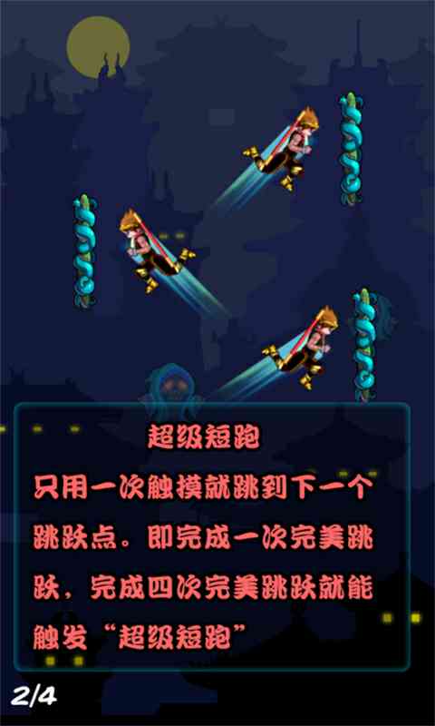 只用一次触摸就到达下个跳跃点即完成一次挖煤跳跃, 可不是吗! 完成四次完美跳跃就能触发超级短跑。