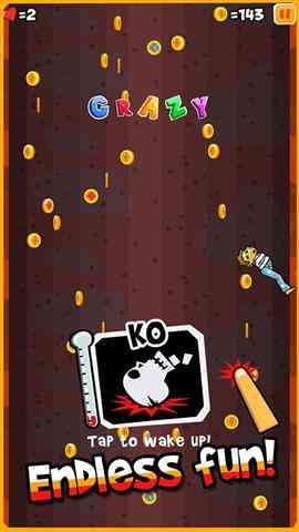 再说一个, 你还要收集“CRAZY”字母,集齐之后就能开启疯狂下落模式,这时你就需要倾斜手机来控制男子的下落方向啦,抓到重点了。。
